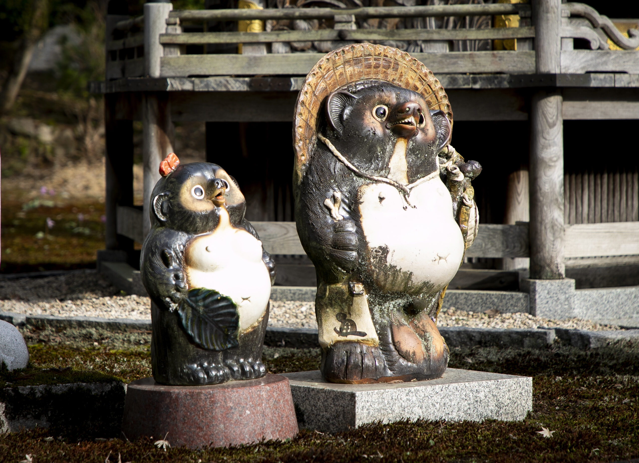 写真はお寺の敷地内にあった、とっても愛らしいたぬきの夫婦?のオブジェ♪